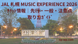 音楽フェスや大型ライブが増える中、北海道・札幌で開催される注目イベントがJAL 札幌 MUSIC EXPERIENCE 2026 です。「チケットはいつから申し込める?」「先行と一般、どれが一番取りやすい?」「遠征でも注意点はある?」そんな...